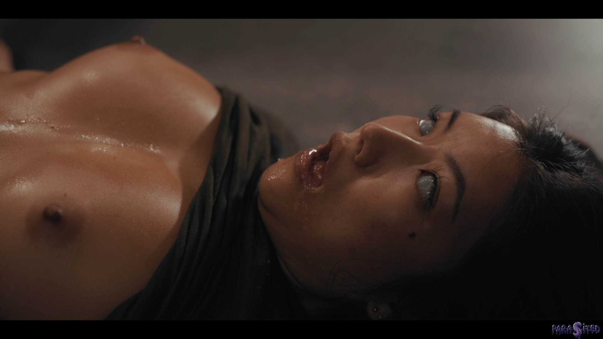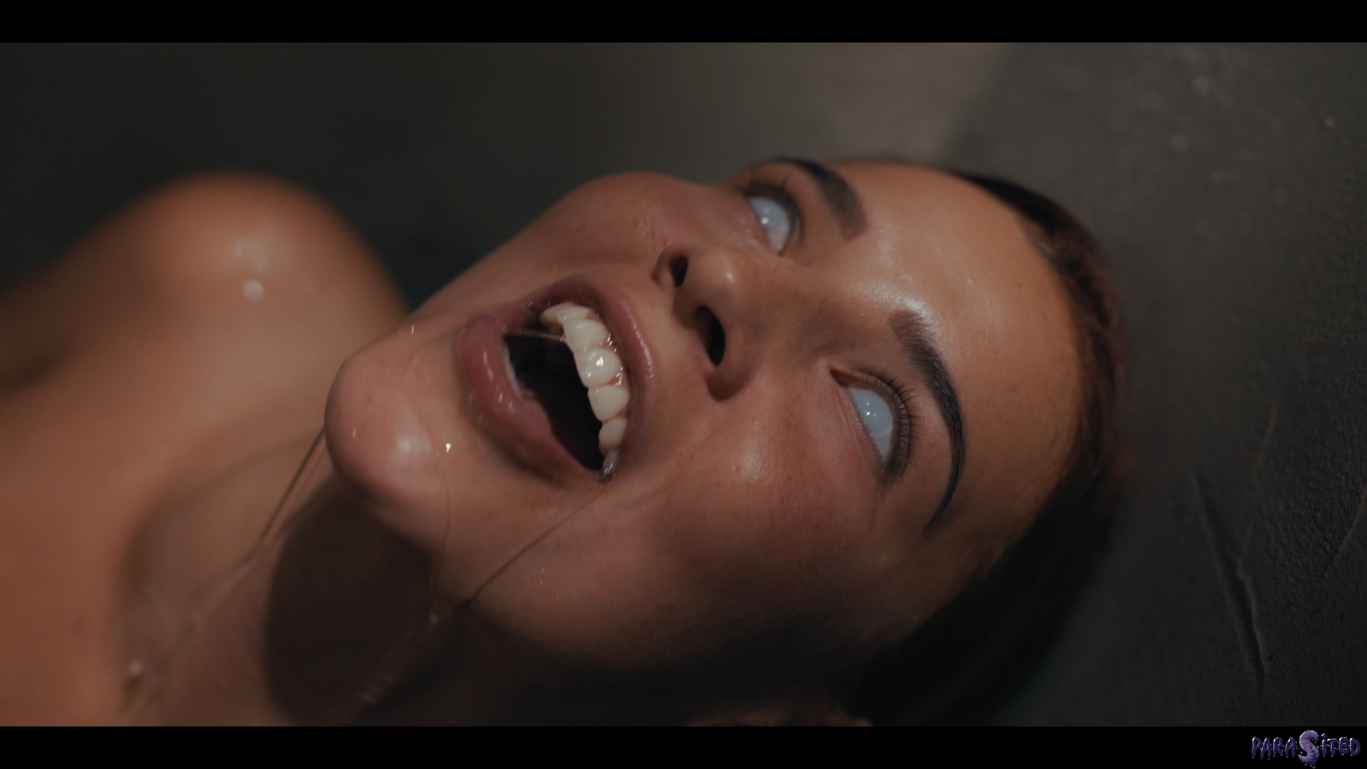 The situation takes a toll on Agatha’s mental state. She takes a shower, worrying about the punishment awaiting her, too distracted by her own thoughts to notice the strange creature slithering towards her. A parasite leaps into Agatha’s vagina, invading her body and corrupting Agatha into a vile and lustful state of her former self.