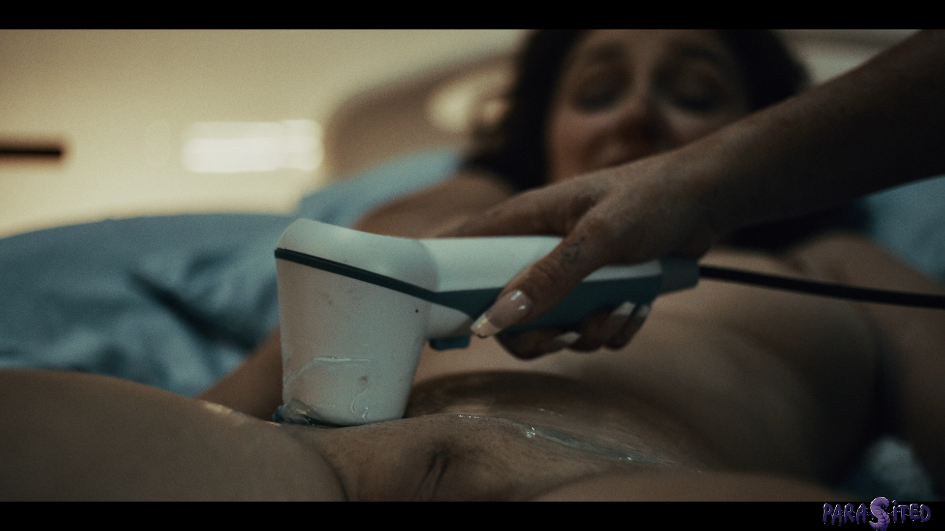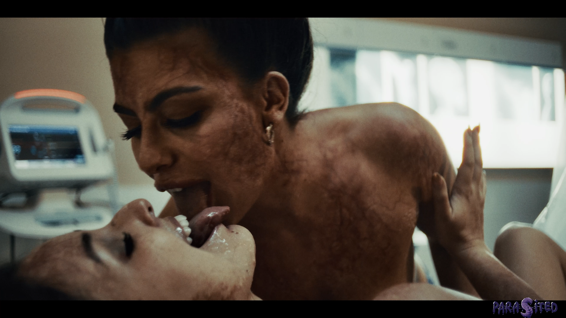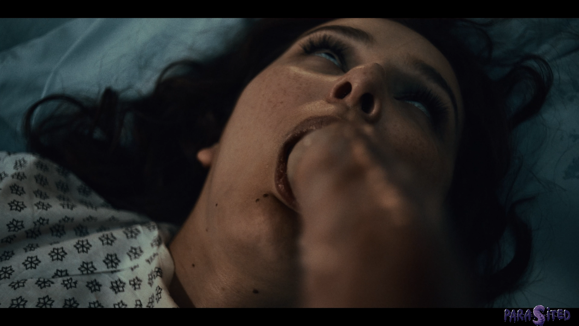 Susan (Leana Lovings) is recovering in hospital from her injuries, leaving the poor woman bedridden. She expresses her concerns with her nurse (Gal Ritchie) about strange noises she’s hearing in the night. The nurse tries to comfort Susan, listening to her worries before supplying her with medication. As she attempts to grab Susan’s medicine, the nurse witnesses something horrifying.  A monstrous parasite.
