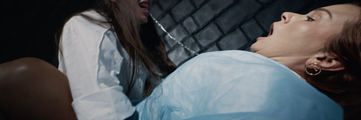 The two corrupted women exchange in a savage display of sexual intercourse, relishing in the orgasmic pleasure until they begin to suffer from an intense reaction. The cure begins to work, causing the parasites to eject out of their bodies, returning the two women to normal.